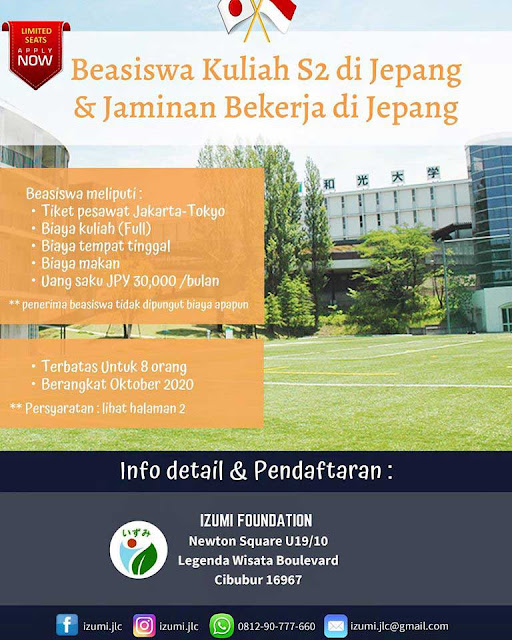 Persyaratan Beasiswa s2 Jepang 2020 Izumi Foundation