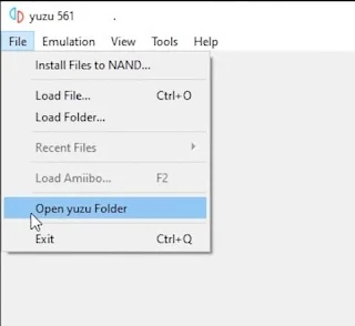 - Terus kamu ke pojok kanan atas klik menu “file” dan klik “open yuzu folder”.